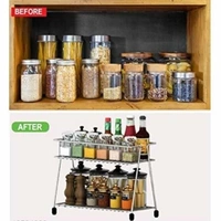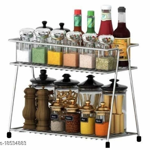 Pla Steel Spice 2-Tier Trolley Container Organizer Organiser/Basket for Boxes Utensils Dishes Plates for Home (Multipurpose Kitchen Storage Shelf Shelves Holder Stand Rack)