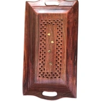 Wooden Coffee Tray Set Of 3 ( Handcarved Coffee, Tea And Snacks Serving Trays ) - (18X10X4 Inches)